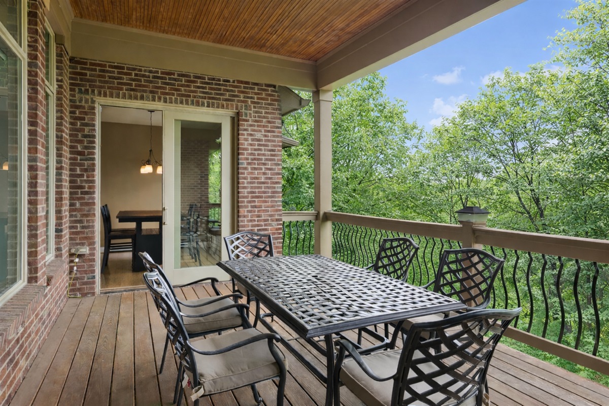 Outdoor Serenity: Two-level deck overlooking wooded views on a private .41-acre lot—ideal for morning coffee or evening sunsets.