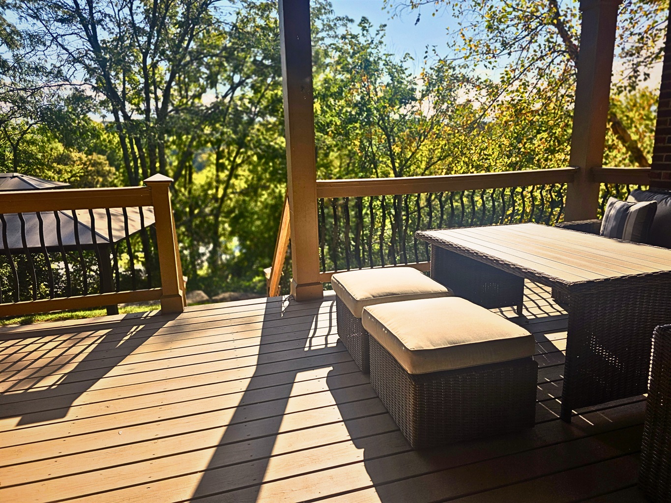 Outdoor Serenity: Two-level deck overlooking wooded views on a private .41-acre lot—ideal for morning coffee or evening sunsets.
